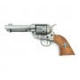 Макет револьвер Кольт Peacemaker, .45 калибра, 4,75" (США, 1886 г.) DE-1038 – это внешне полностью отвечающая боевому прототипу модель знаменитого оружия. Кольт Peacemaker выпускался с 1873 года, причем с различной длиной ствола (7,5 дюймов, 5, 5 дюймов и 4,75 дюймов и т.д.). Кольт Миротворец со стволом 4,75" 1886 года выпуска считался коммерческой модификацией.