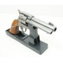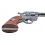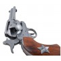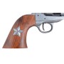 Изделие выполнено с использованием металлического сплава хорошего качества. На рукоятке револьвера установлены накладки из натурального дерева светло-коричневого цвета. В центре рукоятки – звезда. На корпусе – имя бренда и надпись «made in Spain». Вес изделия 0,95 кг, длина – 29 см. Макет упакован в картонную коробку.