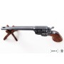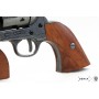 Макет револьвер Кольт Peacemaker .45 калибра, от компании Denix представляет собой великолепно выполненную копию массой 1,02 кг и длиной 35 см – эти параметры точно соответствуют оригиналу. В производстве этого оружия использовался металлический сплава, подходящий для моделей сувенирно-декоративного назначения, а также натуральное дерево. Ударно-спусковой механизм здесь действующий, можно взвести курок и нажать на спуск, барабан вращается. Оружие приятно держать в руке, создается ощущение владения реальным боевым револьвером.