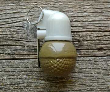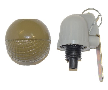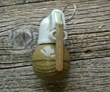 Корпус макета гранаты изготовлен из металлического сплава. Верхняя белая часть из пластика.