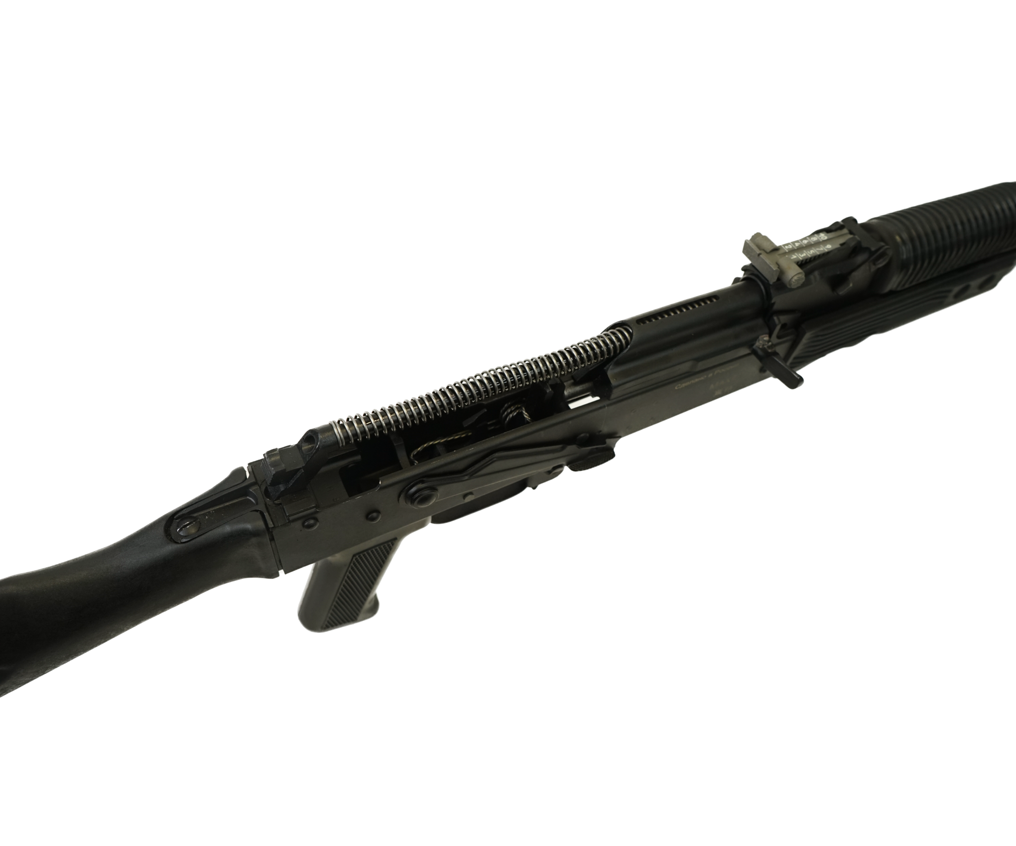 АКМ имеет классический ударно-спусковой механизм. При зажимании спуска и передергивании затвора имитируется удар по ударнику. Элементы автоматического огня такие же, как на боевом образце. Ствол нарезной, плотно запечатан со стороны патронника. Боевой затвор неактивен. Механизм выбрасывателя оригинальный. Деактивация данного образца предусматривает: