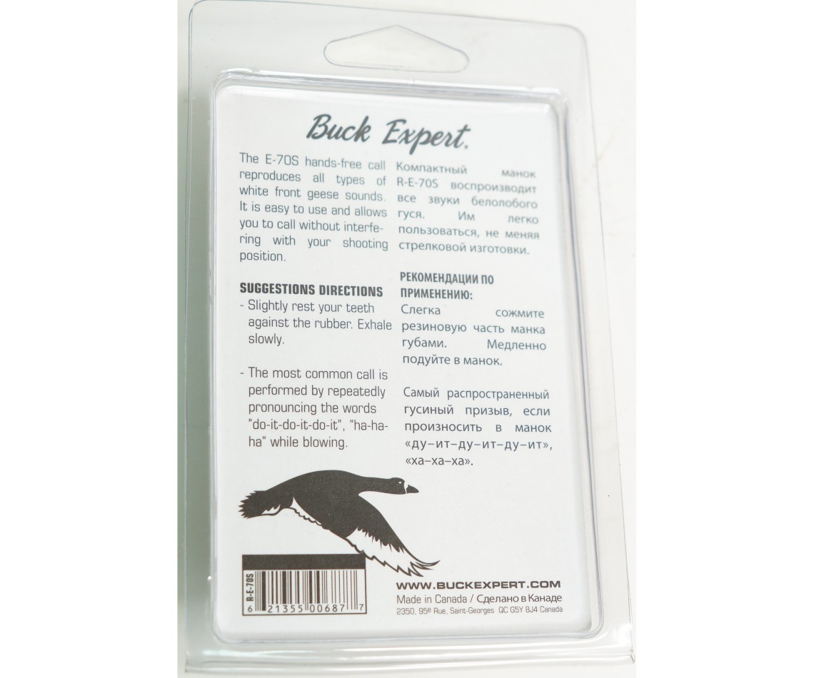 Компактный, эргономичный и легкий манок манок Buck Expert на белолобого гуся предназначен для подманивания гуся во время охоты, экологических исследований или при фото- и видеосъемке. Манок воспроизводит звуки белолобого гуся и гуменника - бубнение во время кормёжки и выкрики.
