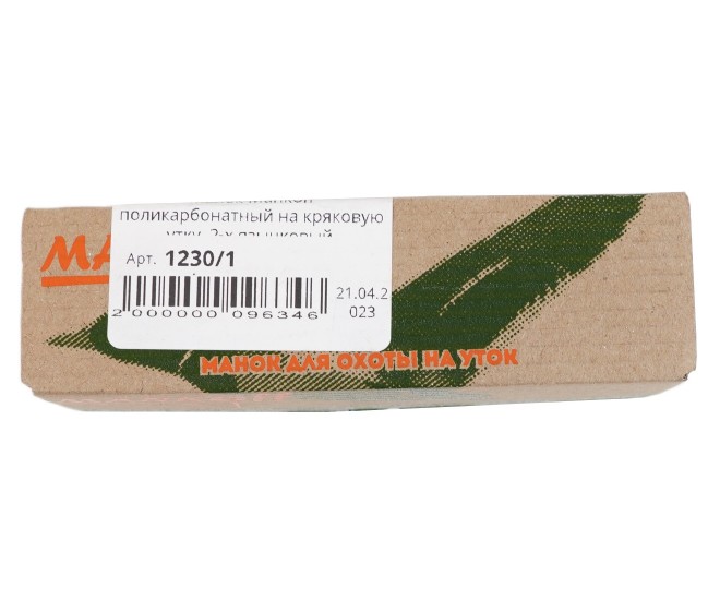 Манок выполнен из акрила, не боится воды и низких температур, устойчив к ударным нагрузкам. Прост в использовании и обслуживании, не требует дополнительного ухода.