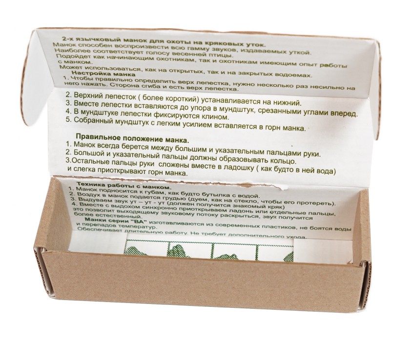 Манок на утку серии ВА могут использоваться для работы на открытых водоемах. Подойдет как опытным, так и начинающим охотникам.