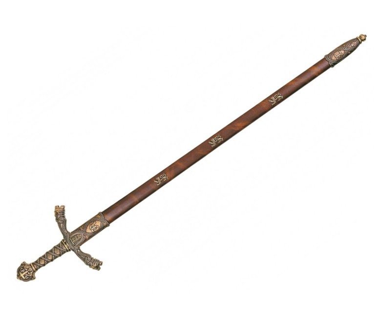 Макет меч Ричарда Львиное сердце в коричневых ножнах – это точно изготовленная копия холодного оружия английского короля, правившего в 12 столетии. Одно прозвище «Львиное сердце» он получил за бесстрашие в бою, другое – «Ричард - Да и Нет» за отсутствие твердости в убеждениях и склонность часто менять свое мнение. Большую часть времени своего правления Ричард провел в военных походах вдали от берегов Англии, он стал инициатором Третьего крестового похода.