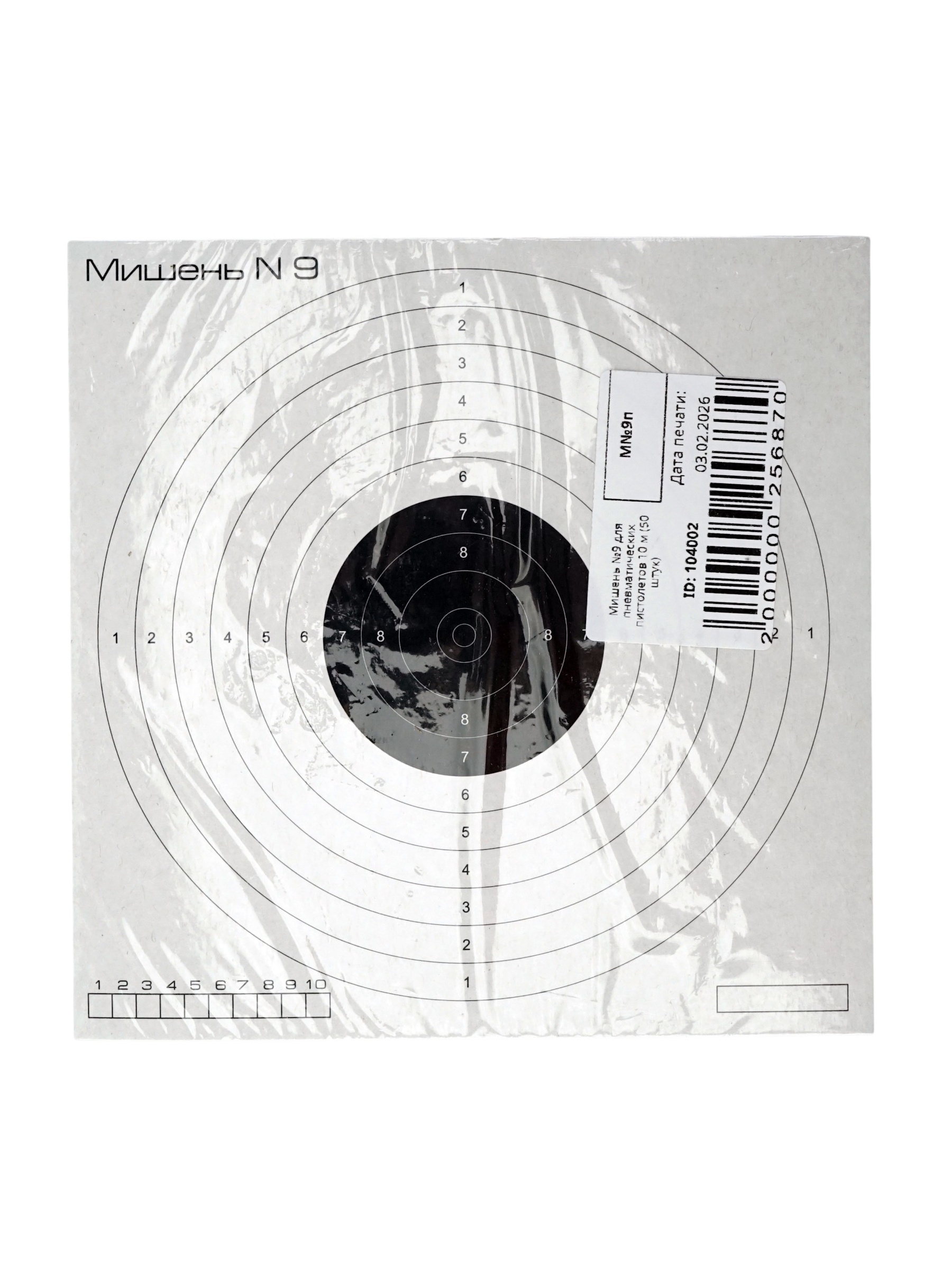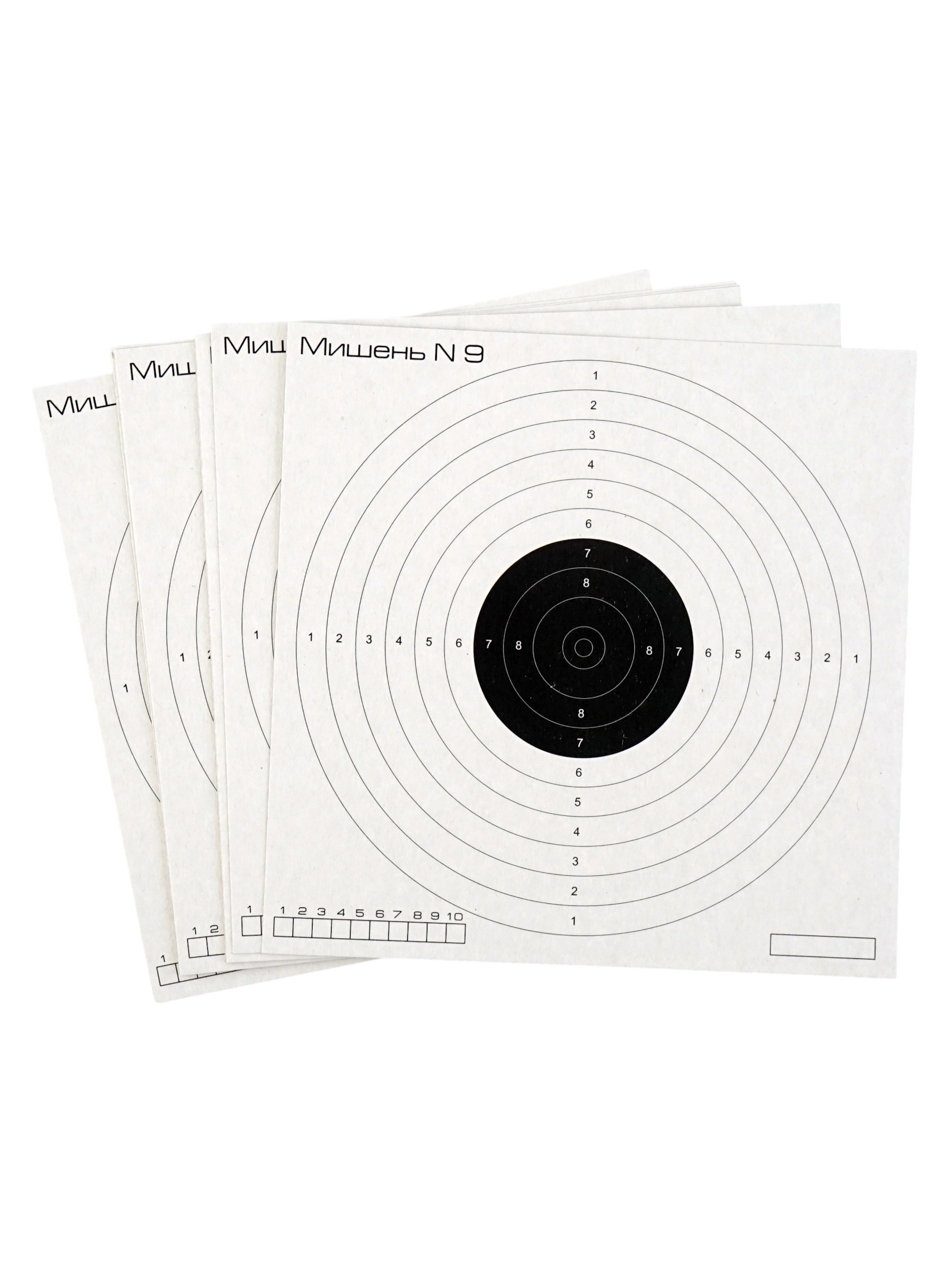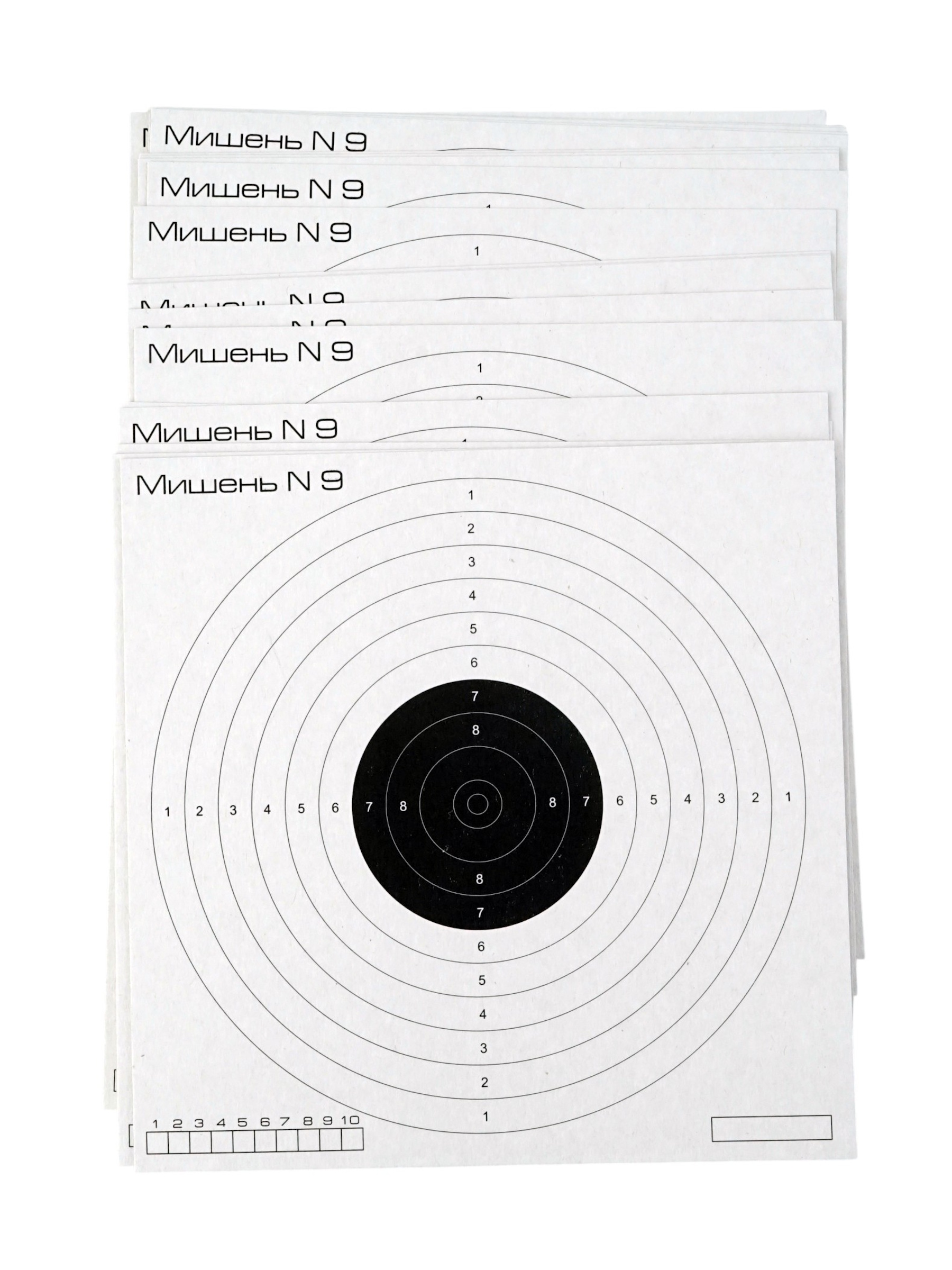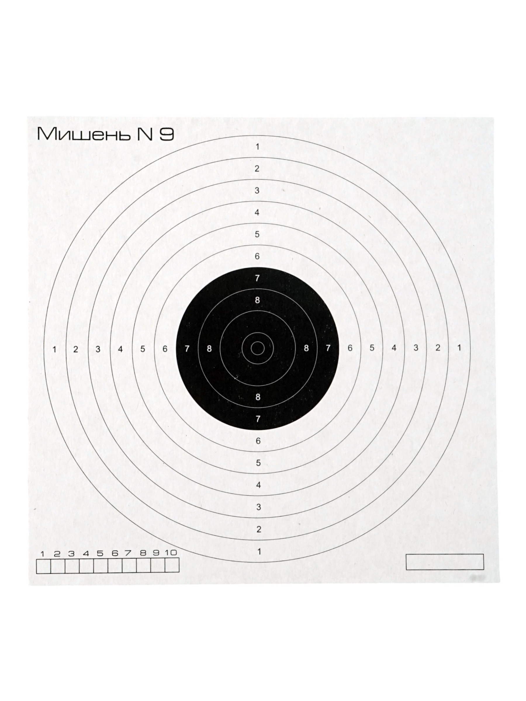 Черно-белая мишень изготовлена из качественной бумаги. Подходит для стрельбы из пневматического пистолета на дистанции 10 метров.