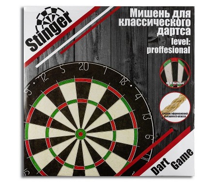 Мишень из сизаля имеет увеличенный срок службы. Он хорошо задерживает дротики и затягивается после их вынимания, не позволяя разрушать основу мишени.