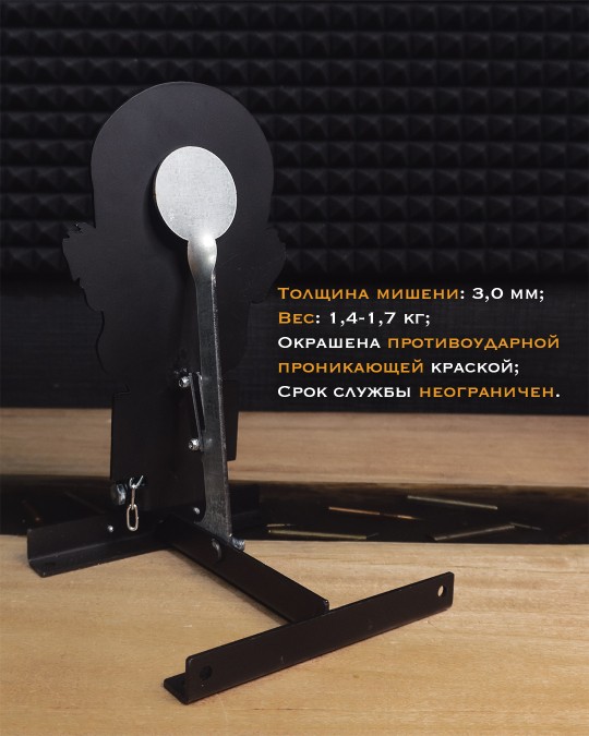 • изготовлена из металла толщиной 3 мм, выдерживает пнавматику калибра 5,5 мм;