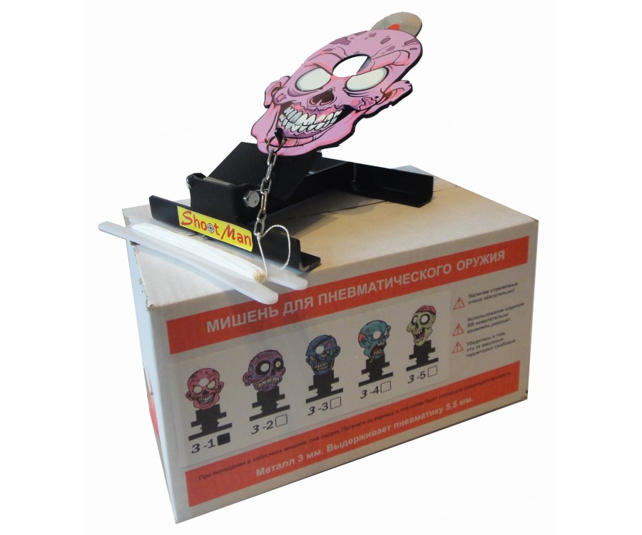 При попадании в яблочко мишени «Зомби» она падает. Просто потяните за веревку и она будет готова для следующего выстрела.