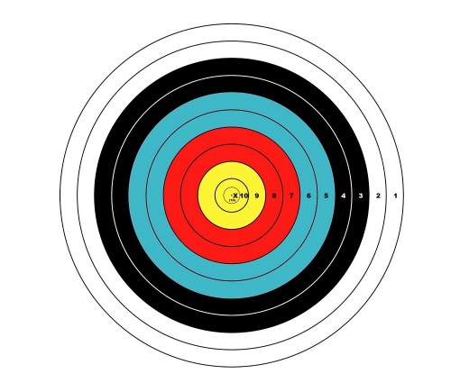 Дистанция стрельбы 18 метров. Полная соревновательная (тренировочная) мишень с 10-ю концентрическими кругами и центром мишени. Диаметр мишени 40 см.