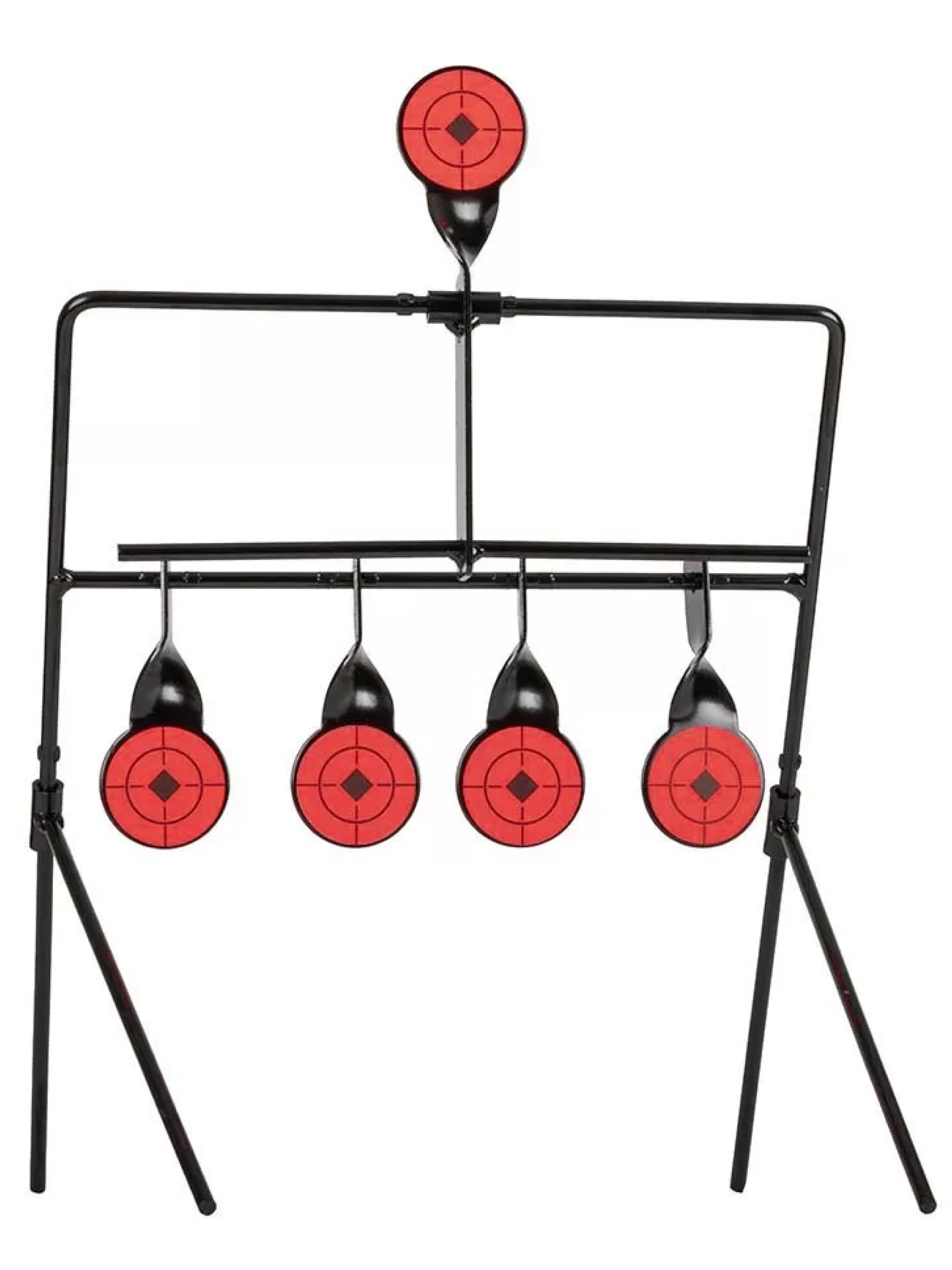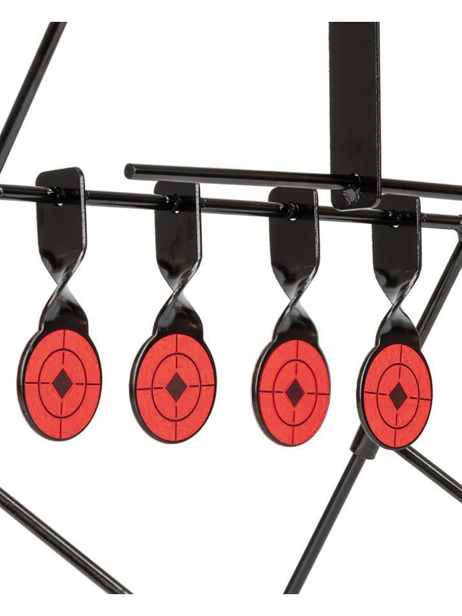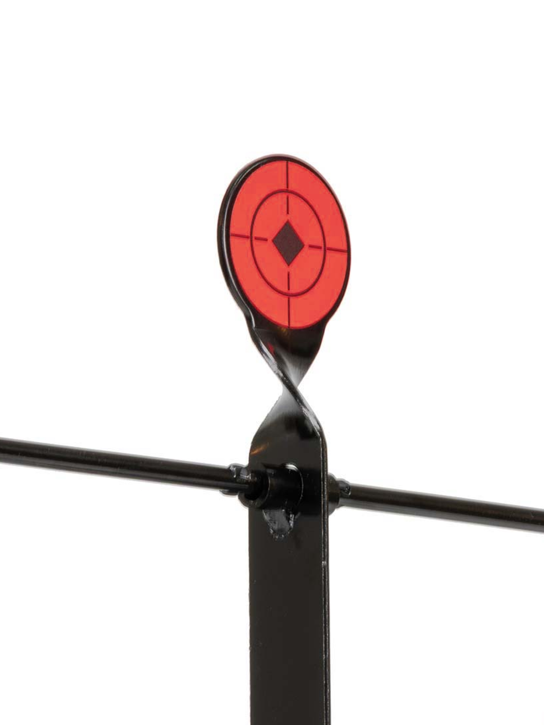 Мишень можно легко и быстро установить на любую гладкую поверхность или воткнуть в землю. Верхняя мишень с опорной планкой должна находиться перед нижними. При попадании по нижним мишеням, они проворачиваются назад и ложатся на опорную планку. При поражении верхней мишени опорная планка качнётся вперёд и сбросит нижние мишени. Можно продолжать стрельбу.