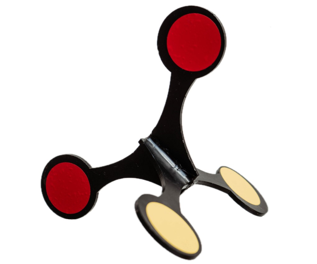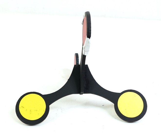 Она выполнена в виде системы из 4 мишеней, три из которых составляют опору, а четвертое поднята для стрельбы. При попадании она переворачивается.