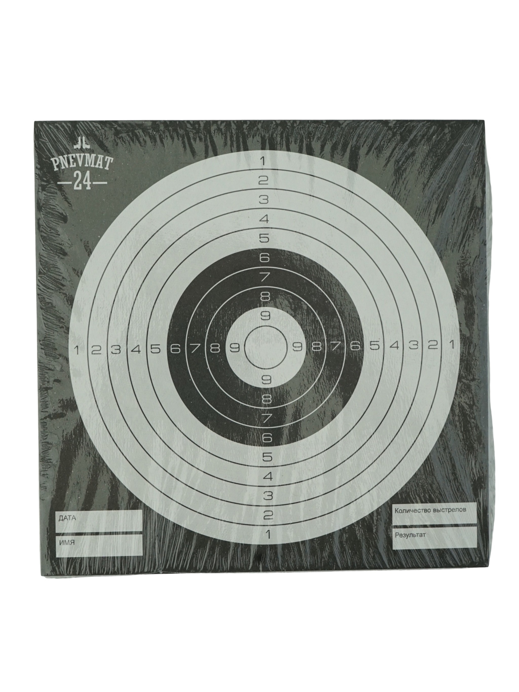 Набор стандартных черно-белых мишеней для соревнований, со всей необходимой информацией для подведения итогов стрельб. Мишени для пневматических пистолетов и винтовок, по 50 штук в упаковке.