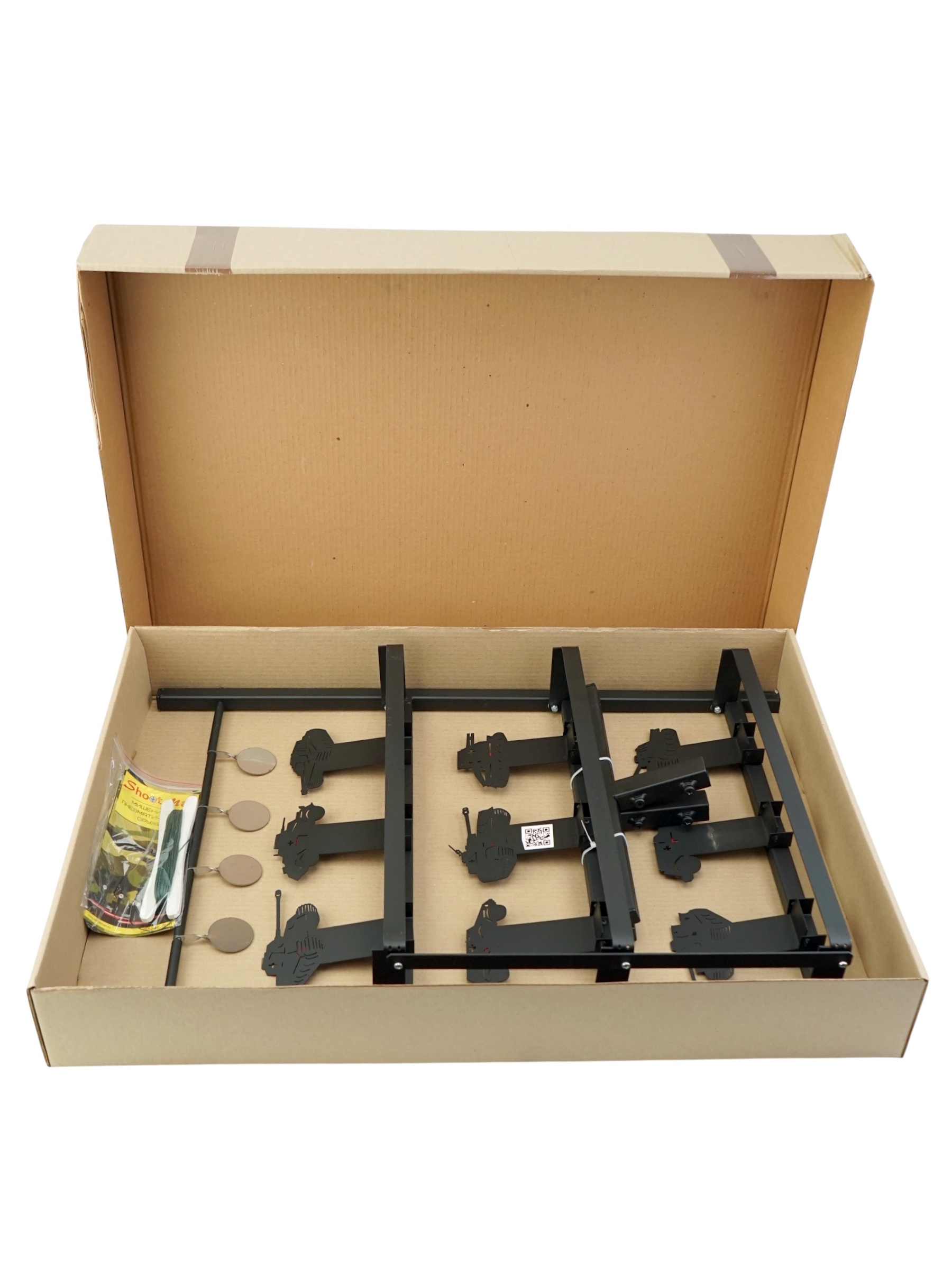 При необходимости комплексы можно объединить. Комплектуется шнуром длиной 20 метров, необходимым для поднятия мишеней после выстрелов.