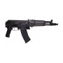 ММГ автомат АК-105, складной приклад – это копия одного из самых известных компактных автоматов Калашникова, разработанного для внутреннего рынка под штатный патрон калибра 5,45 мм. Как и все модификации «сотой» серии АК, этот автомат был разработан на основе АК-74М. Изменения коснулись длины ствола, кроме того, в дульной части ствола появилась возможность установить пламегаситель. АК-105 можно было оснастить подствольным гранатометом, штык-ножом и оптическими приспособлениями. Как и другие модификации этой серии, АК-105 получил открытые прицельные приспособления. Скорость пули у АК-105 выше, чем у АК-74М, и составляет 840 м/с. УСМ куркового типа данной модификации позволяет вести огонь и очередями, и одиночными выстрелами.