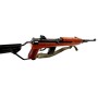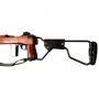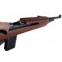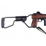 Макет карабина М1А1 со складным прикладом полностью соответствует своему боевому оригиналу – как по внешнему виду, так и по габаритам. Как и в оригинале, приклад, цевье и часть корпуса выполнены из натурального тополя, а основание оружия компания Denix производит из специального сплава с алюминием и цинком, имеющего отличную плавкость и неплохую прочность. По весу и длине макет карабина также в точности повторяет свой стрелковый прототип – масса орудия составляет 2,395 кг, длина 90 см. Так как стрельба из такого макета невозможна, купить его в нашем магазине может каждый желающий.