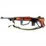 Макет карабин М1А1, с ремнем и складным прикладом – это полноценная копия американского стрелкового оружия, разработанного в 1944 году для нужд армии, точнее – для экипажей боевых машин и орудийных расчетов. После того, как в 1941 году компанией Винчестер был разработан промежуточный патрон 7,62х33 мм, возникла необходимость в разработке под него и легкого самозарядного карабина. Первой модификацией в этой линейке стал карабин М1 – с укороченным стволом, облегченным весом, простой в эксплуатации и надежный. Карабин М1 уже в том же 1944-м году поступил на вооружение, и был по достоинству оценен на фронтах, получив ласковое название «бэби-гаранд», поскольку представлял собой внешне копию винтовки М1 Гаранд в уменьшенном виде. За все время его производства было выпущено порядка 6 миллионов единиц данного карабина.