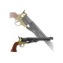 Макет револьвера Кольт DE-1007-L времен Гражданской войны от испанского бренда Denix отличается высокой степенью сходства с боевым аналогом, его габариты, масса и конструкция полностью отвечают оригиналу. Корпус револьвера изготовлен из металлического сплава хорошей прочности, обеспечивающего долговечность этому оружию. Часть элементов оружия изготовлены из латуни, на рукоятке имеются деревянные накладки, для удобства удержания револьвера. Это изящное и эффектное оружие имеет подвижные элементы, однако не рассчитан на ведение стрельбы. Покупка макета револьвера доступна сегодня всем желающим.