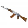 ММГ учебный автомат Калашникова АК-74 (хромированный, дерево) – это модификация на основе боевого экземпляра, с максимально сходным экстерьером и аналогичными габаритными параметрами. Естественно, такой автомат будет невозможно использовать для решения огневых задач. Боевым прототипом данной модели является непревзойденный «Калашников» АК-74.