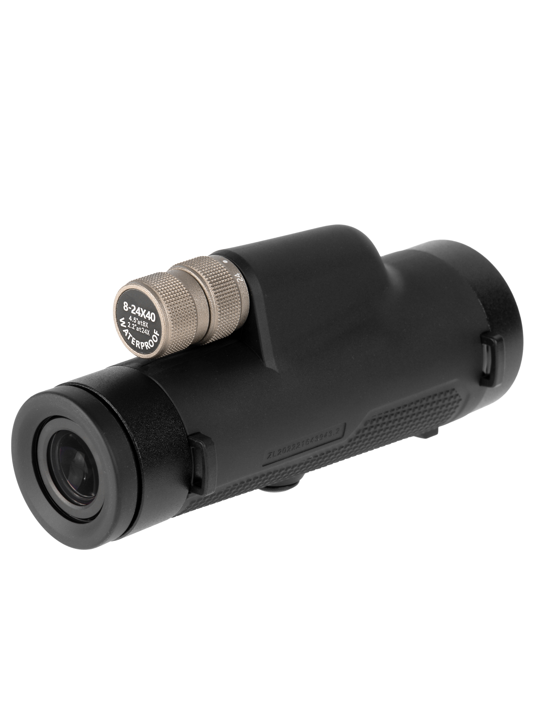 ZOOM 8-24x40WP имеет заполненный осушенным газом корпус и степень влагозащиты IP67, что означает полную защиту от пыли, а также от погружения в воду на глубину не более чем 1 м. Благодаря осушенному газу линзы монокуляра защищены от запотевания при перепаде температур.