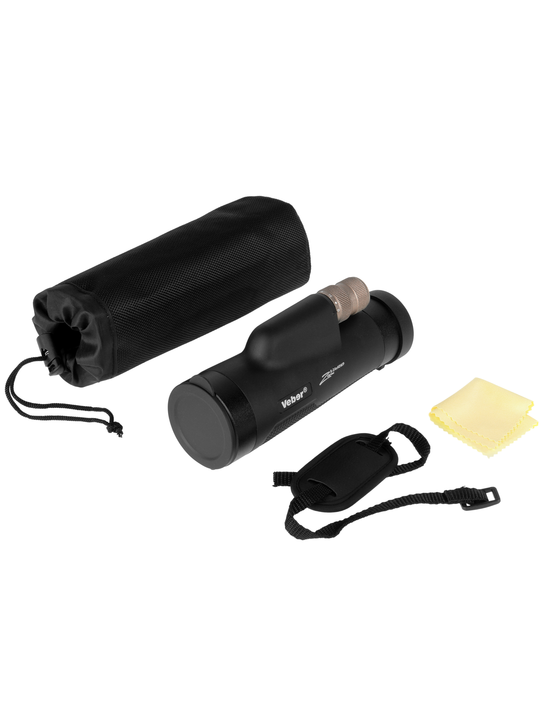 Чтобы предотвратить попадание пыли и брызг на оптику, в комплекте идет нетеряемая крышка объектива и защитная крышка окуляра. Брызгозащитный чехол с фиксатором ремешка позволит не думать о безопасности монокуляра в процессе транспортировки и хранения.