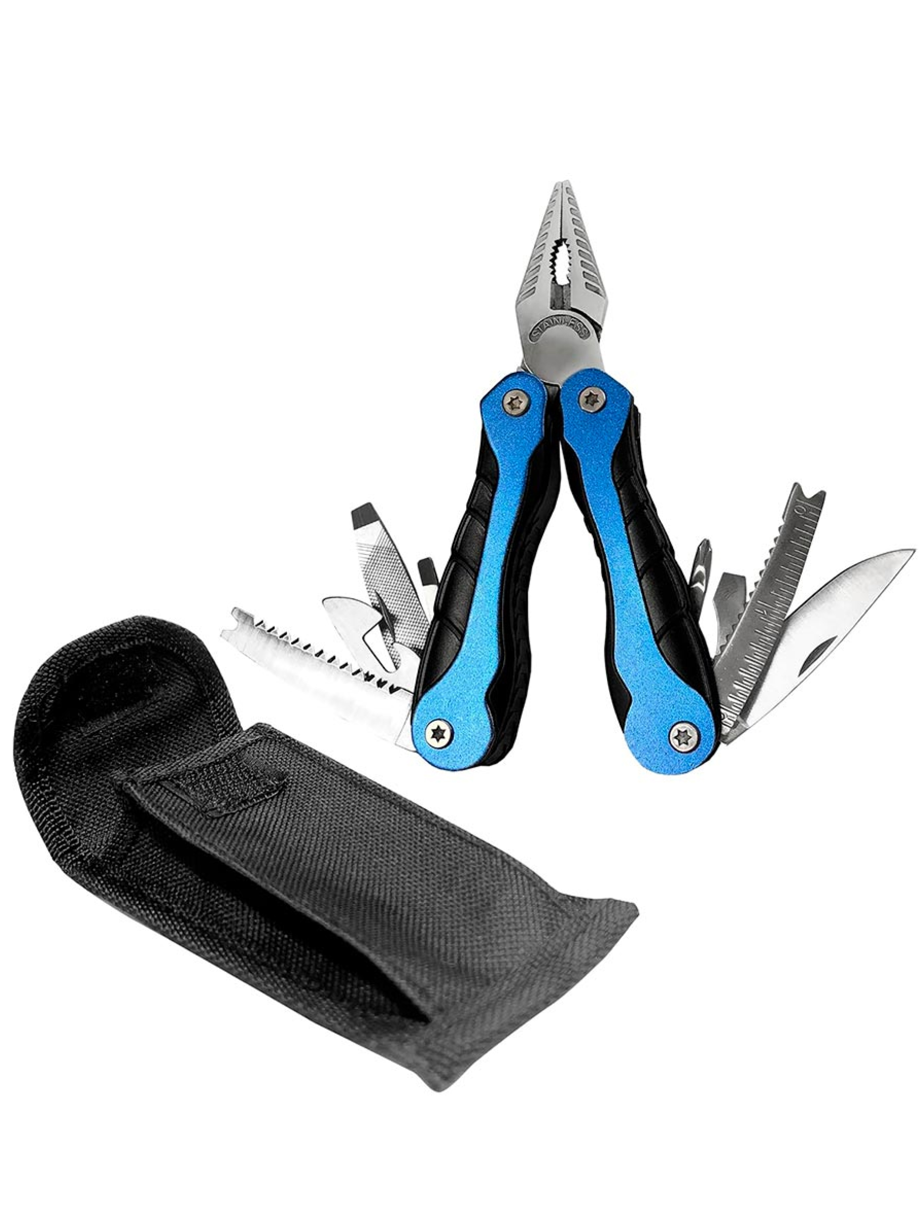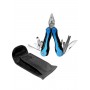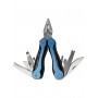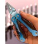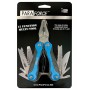 Этот многофункциональный инструмент с пружинящими плоскогубцами изготовлен из анодированного алюминия и нержавеющей стали. Имеет пластиковые рифлёные накладки эргономичной формы для удобства захвата.