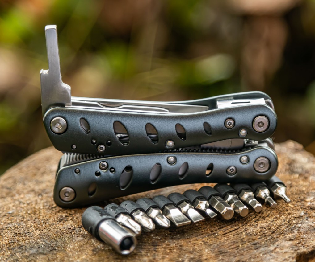 Детали складного мультитула изготовлены из нержавеющих сталей 440, 5Cr14 и 2Cr13. Инструменты долговечны и устойчивы к воздействию влаги. Клинки долго сохраняют остроту и не требуют частой заточки. Для изготовления бит использована высокопрочная сталь с большим содержанием углерода. Насадки устойчивы к деформациям и износу, что особенно важно при работе с твердыми материалами.