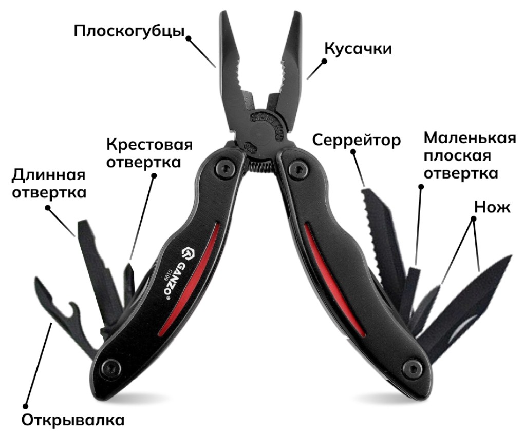 Ganzo G109 — многофункциональный мультитул для различных задач. Модель сочетает в себе 10 функций, что делает его универсальным инструментом для дома, машины и активного отдыха. Им можно подтянуть ослабленные болты в автомобиле или отремонтировать сломанное снаряжение во время похода.