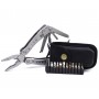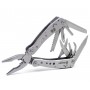 Центральный элемент мультитула — подпружиненные плоскогубцы со встроенными кусачками. Они автоматически возвращаются в исходное положение после сжатия, что упрощает использование и снижает усталость рук при долгой работе с инструментом. Плоскогубцы отлично справляются с удерживанием мелких деталей, перекусыванием проволоки и монтажом крепежных элементов. В набор бит входят 5 шестигранников, 3 плоских отвертки и 3 крестовых. Насадки крепятся к держателю с помощью магнитного переходника. Биты не болтаются и не выпадают во время работы.
