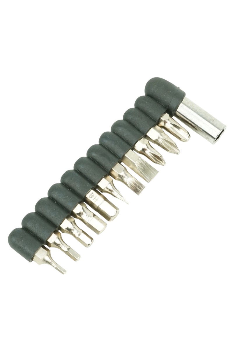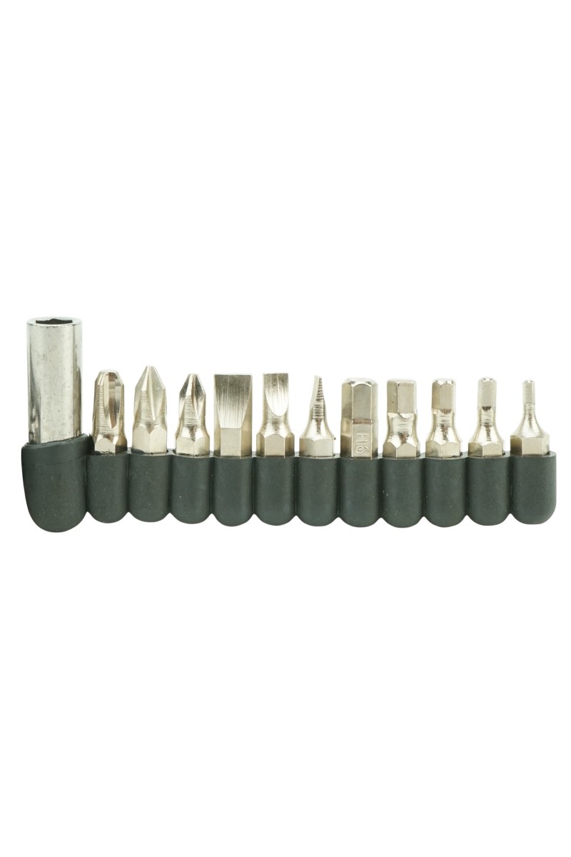 Центральный элемент мультитула — подпружиненные плоскогубцы. Они автоматически возвращаются в исходное положение после сжатия, что упрощает использование и снижает усталость рук во время работы с инструментом. Плоскогубцы отлично справляются с удерживанием мелких деталей, перекусыванием проволоки и монтажом крепежных элементов. В набор бит входят 5 шестигранников, 3 плоских отвертки и 3 крестовых. Насадки крепятся к держателю с помощью магнитного переходника, поэтому биты не болтаются и не выпадают во время работы.