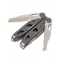 Нож, пилу, напильник с линейкой и универсальный инструмент можно легко открыть одной рукой. В открытом состоянии они блокируются специальными замками и надёжно фиксируются. Основной клинок имеет частичную серрейторную заточку, которая отлично справляется с верёвками и другими волокнистыми предметами. В торцах рукояти находятся держатель для бит и стеклобой. Пила сделана двухрядной, что позволяет с лёгкостью перепиливать ветки и небольшие деревья.