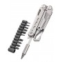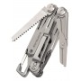 | Инструменты: | плоскогубцы, пассатижи, кусачки со сменными губками, основной клинок, крестовая отвёртка Philips / основание для переходника под биты, отвертка с плоским шлицем шириной 3 мм, отвертка с плоским шлицем шириной 6 мм, открывалка для консервов, инструмент для зачистки проводов, ножницы, карабин / открывалка для бутылок, пила по дереву, напильник, линейка |