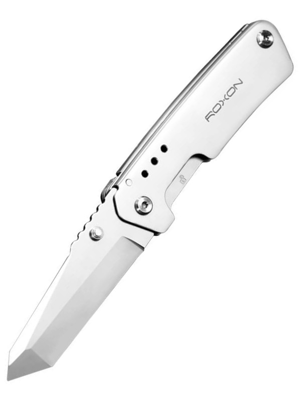 Лезвие клинка получило форму American tanto. У него гладко заточенная кромка реза с практически прямой линией и резким подъемом к острию. Обух ножа сделан со скосом, который создает эффект фальшлезвия. Ближе к рукоятке на спинке ножа сделано несколько не острых полукруглых зазубрин, которые нужны для более надежного упора пальца. Длина клинка равна 7,5 см. Нож достается из рукоятки при помощи небольшого шпенька на лезвии.