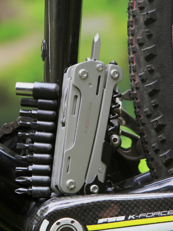 В одной рукоятке размещены нож с гладко заточенным лезвием, стропорез, консервный нож, шило, ножницы, линейка и держатель для бит, выступающий также в качестве крестообразной отвертки. В другой находятся пила, небольшой напильник, край которого используется как прямая отвертка, открывалка, штопор и стеклобой. Твердость стеклобоя составляет 80-85 HRC, поэтому в аварийной ситуации им можно разбить даже самое прочное стекло.