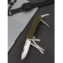 Инструменты: длинное лезвие, ножницы, инструмент для закручивания проволоки, открывалка для бутылок, большая отвертка 6,5 мм, инструмент для оголения провода, скальпель, шило, инструмент для работы с проводом большего диаметра, ключ для велосипедных спиц, отверстие для нитки, малая отвертка 3 мм, стропорез, карманная клипса, штопор, стеклобой, кольцо для ключей/ темляка, пинцет