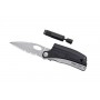 | Комплектация (?): | 1. Нож (полусеррейтор) 2. Светодиодный фонарь с механической подзарядкой 3. Свисток 4.Точилка |