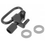 Данные антабки предназначены для установки на стандартные крепления с диаметром отверстия не менее 3.5 мм (поставляются в комплекте). Кольцо и ось антабки изготовлены из прочной стали, а корпус выполнен из легкого алюминиевого сплава. Конструкция антабок обеспечивает быстросъемное соединение. Внутренний диаметр кольца составляет 27 мм, что позволяет использовать их с различными аксессуарами и оборудованием.