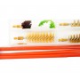 В состав набора входит: шомпол составной 70 см, войлочные патчи, масло нейтральное (25 мл), ерш пуховка, ерш спиральный, ерш щетинный, ерш щетинный (пластмасса), переходник под патчи.