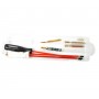 В состав набора входит: шомпол составной 70 см, войлочные патчи, масло нейтральное (25 мл), ерш пуховка, ерш спиральный, ерш щетинный, ерш щетинный (пластмасса), переходник под патчи.