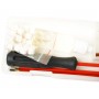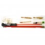 В состав набора входит: шомпол составной 70 см, войлочные патчи, масло нейтральное (25 мл), ерш пуховка, ерш спиральный, ерш щетинный, ерш щетинный (пластмасса), переходник под патчи.
