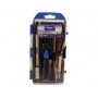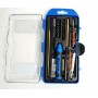| Комплектация (?): | чехол, рукоятка, протяжка, латунный шомпол, ершик, пуховка, щеточка для патронника, скребок, нейлоновая щеточка, щеточка 6,3 мм, выколотка, вишер, 25 патчей,бит для рукоятки, инструкция |