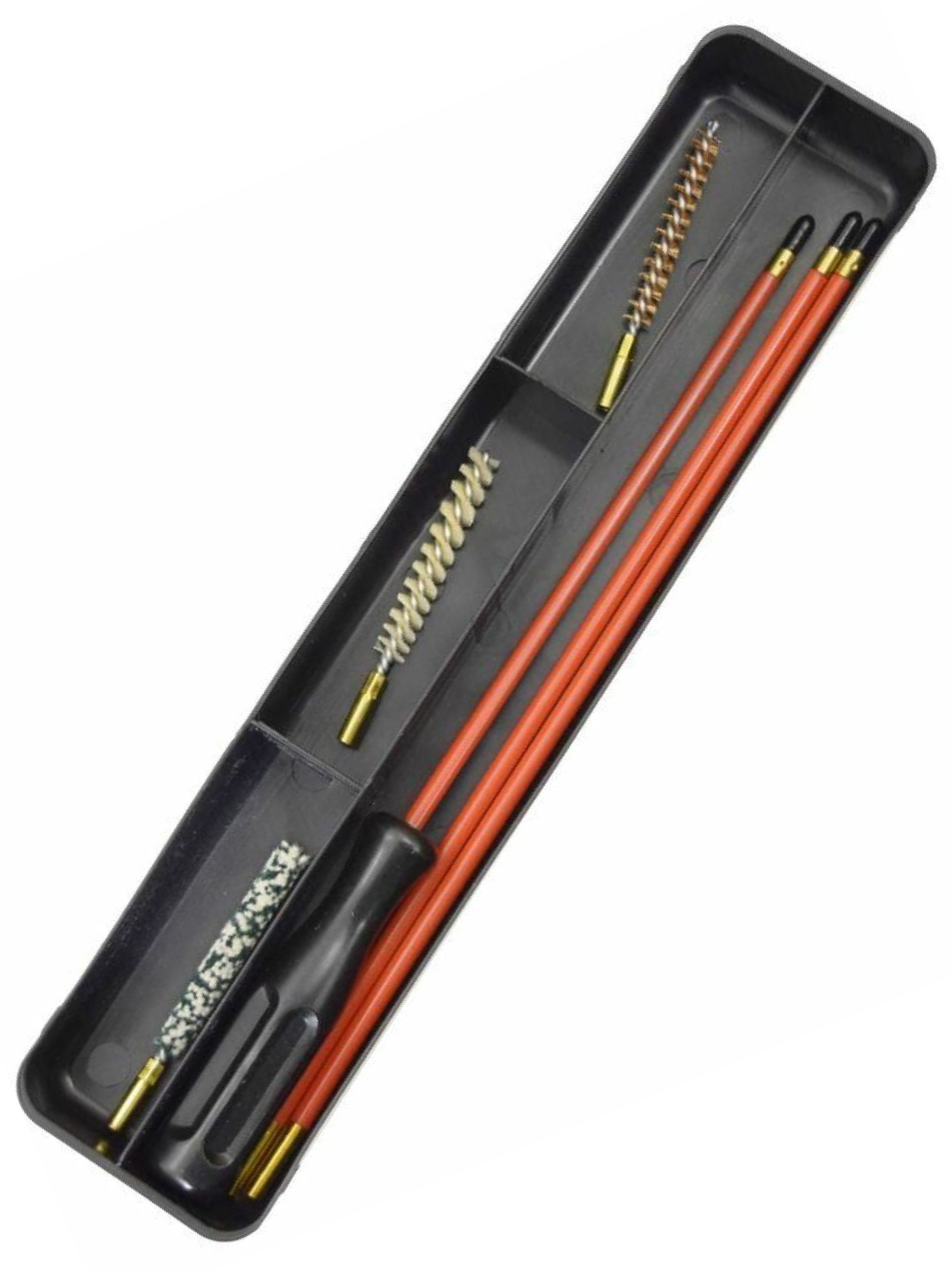 | Комплектация(?): | шомпол, сборная секция - 2 шт, ерш, пуховка, ерш щетинный (латунь), пластиковый футляр |
