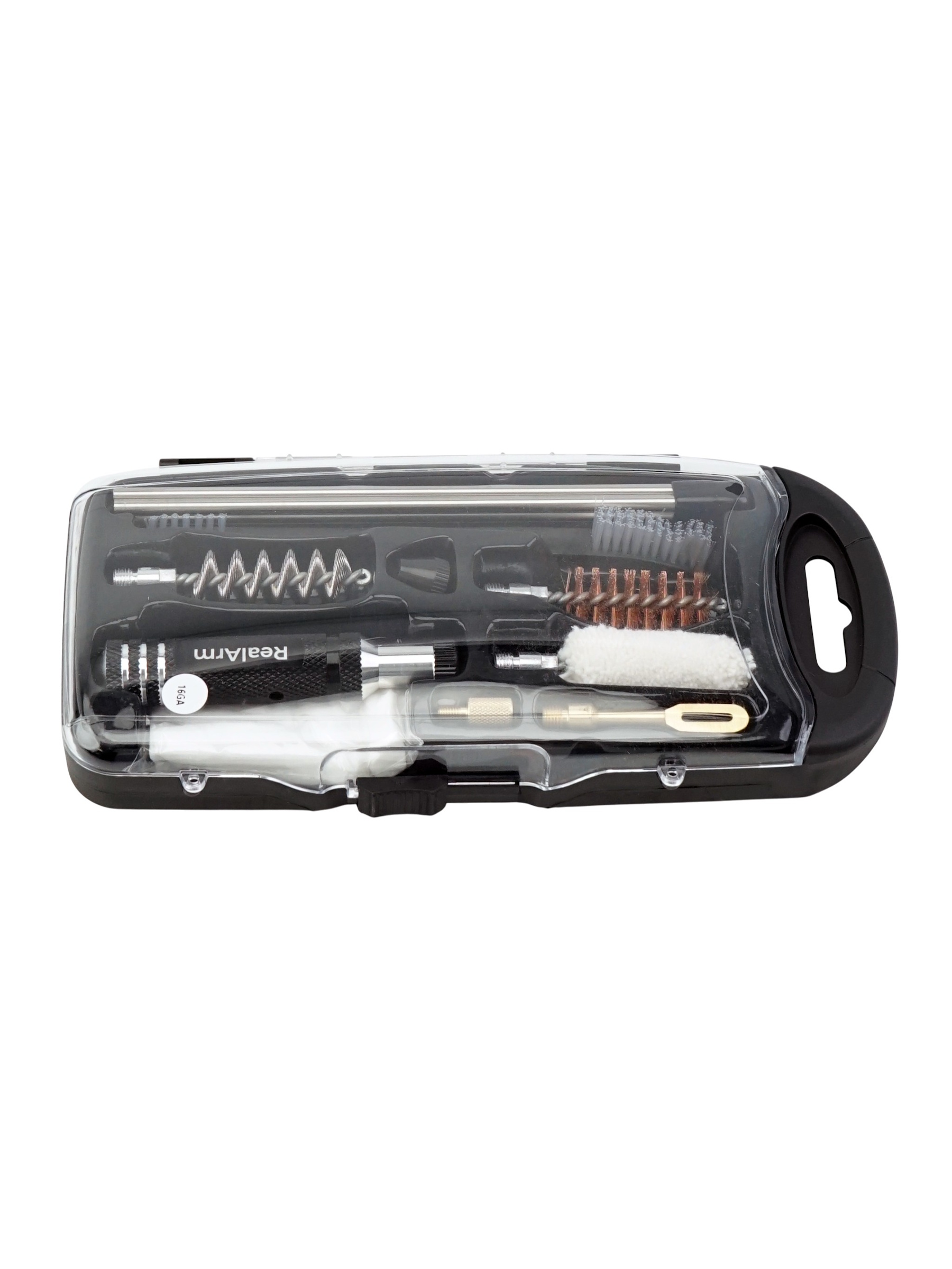 | Комплектация (?): | сборный шомпол, двусторонняя щетка, алюминиевая рукоять, хлопковая насадка, бронзовый и стальной ершик, вишер щелевой, адаптер, надульный колпачек, салфетки (50 шт), пластиковый кейс | |