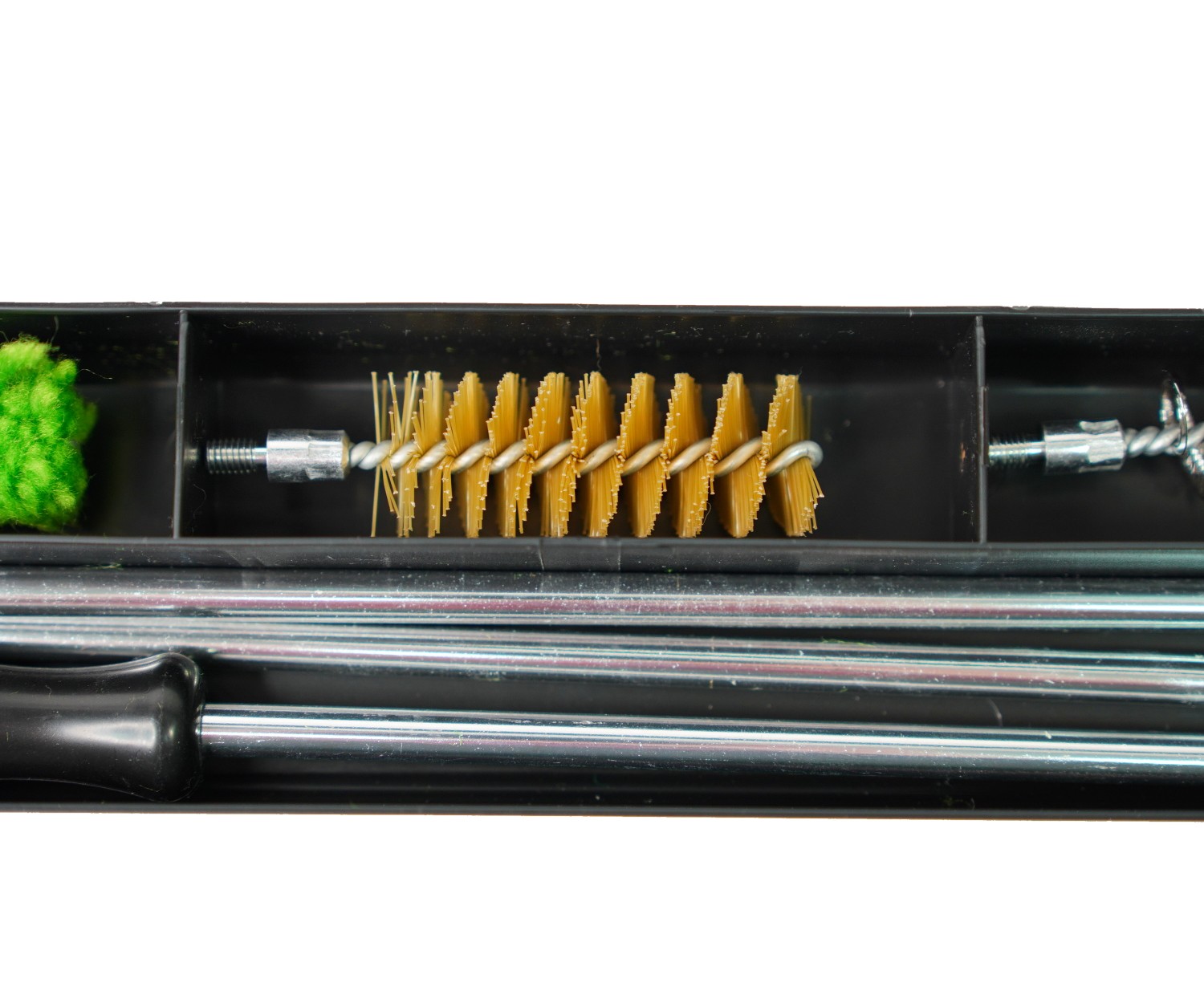 Набор для удаления из канала ствола стрелкового или охотничьего оружия нагара, копоти, ржавчины и т.д. Данный набор имеет очень компактный размер, он предназначен для чистки оружия 20 калибра.