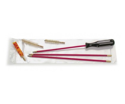 Набор для чистки в п/э пакете, поставляется с метало-пластиковым шомполом в красной оплетке (трех секционный разборный), и с тремя разними ершики (пуховка, нейлоновый щетинный и стальной спиральный). Набор удобно использовать не только в домашних условиях, но и «в поле» для решения оперативных задач по чистке либо обслуживанию оружия. Набор для чистки будет служить вам долгие годы.