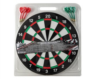 Отличный набор для времяпрепровождения за игрой в дартс. Двухсторонняя мишень, комплект из 6 дротиков и крепление петля. Больше ничего не надо, кроме хорошей компании!