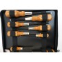В набор оружейного мастера входят, отвертки, выколотки из латуни и латунный молоток. Все отвертки выполнены из углеродной стали с закаленной рабочей частью до 50-56 R/c. Каждая отвертка шлифована под определённый винт, с погрешностью от - .002 до .000 сотых миллиметра. Рабочая часть инструмента точно садится в паз винта и при нагрузке острый кончик отвертки не гнется и не скалывается. Особое внимание уделено и рукояткам, их выполняют из твердых пород дерева с оригинальной внешней формой. Качественная деревянная ручка является ключом к хорошему сцеплению с руками, становящимися скользкими от масла при работе с огнестрельным оружием.