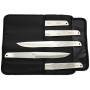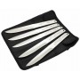 Центр тяжести ножей смещен по направлению к лезвию. Отверстие на рукоятке позволяет сделать обмотку. Ножи укомплектованы ножнами из синтетического материала повышенной прочности. Для каждого ножа предусмотрен свой карман, за счет плотного расположения ножа он никогда не выпадет. Ножны сворачиваются в компактный рулон и фиксируются ремешками. Количество ножей в наборе позволит не бегать за инструментом после каждого броска.