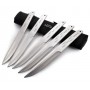 Набор из 5 метательных ножей (M-121N) – это комплект из инструментов идеально обтекаемой формы и среднего веса от известного бренда. Ножи изготовлены из стали 40Х13 твердости 55-56 Hrc, обух толщиной 5 мм. Интересная концепция данного набора – каждый нож имеет лазерную гравировку в виде пуль, от одной до пяти, а также надпись – пуля 1, пуля 2 и т.д.
