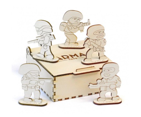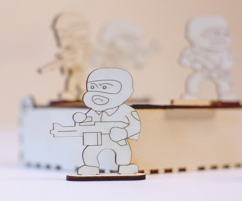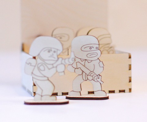 Специально к резинкострелам у нас разработаны особые мишени. Это подразделение из 5 бойцов высотой 7 см некой враждебной страны.